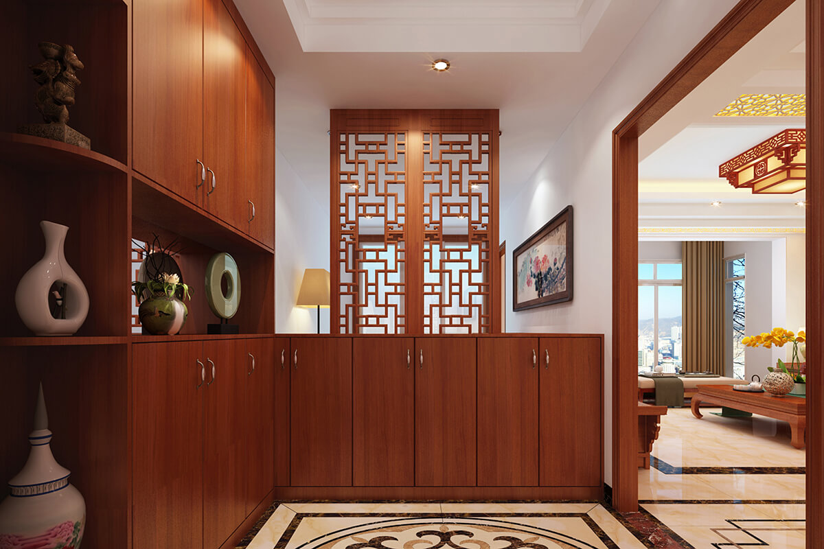 本案設計采用新中式風格,中式風格的古色古香與現代風格的簡單素雅自然銜接,使生活的實用性和對傳統文化的追求同時得到了滿足。居室在色彩方面秉承了傳統古典風格的典雅和華貴,但與之不同的是加入了很多現代元素,呈現著時尚的特征。