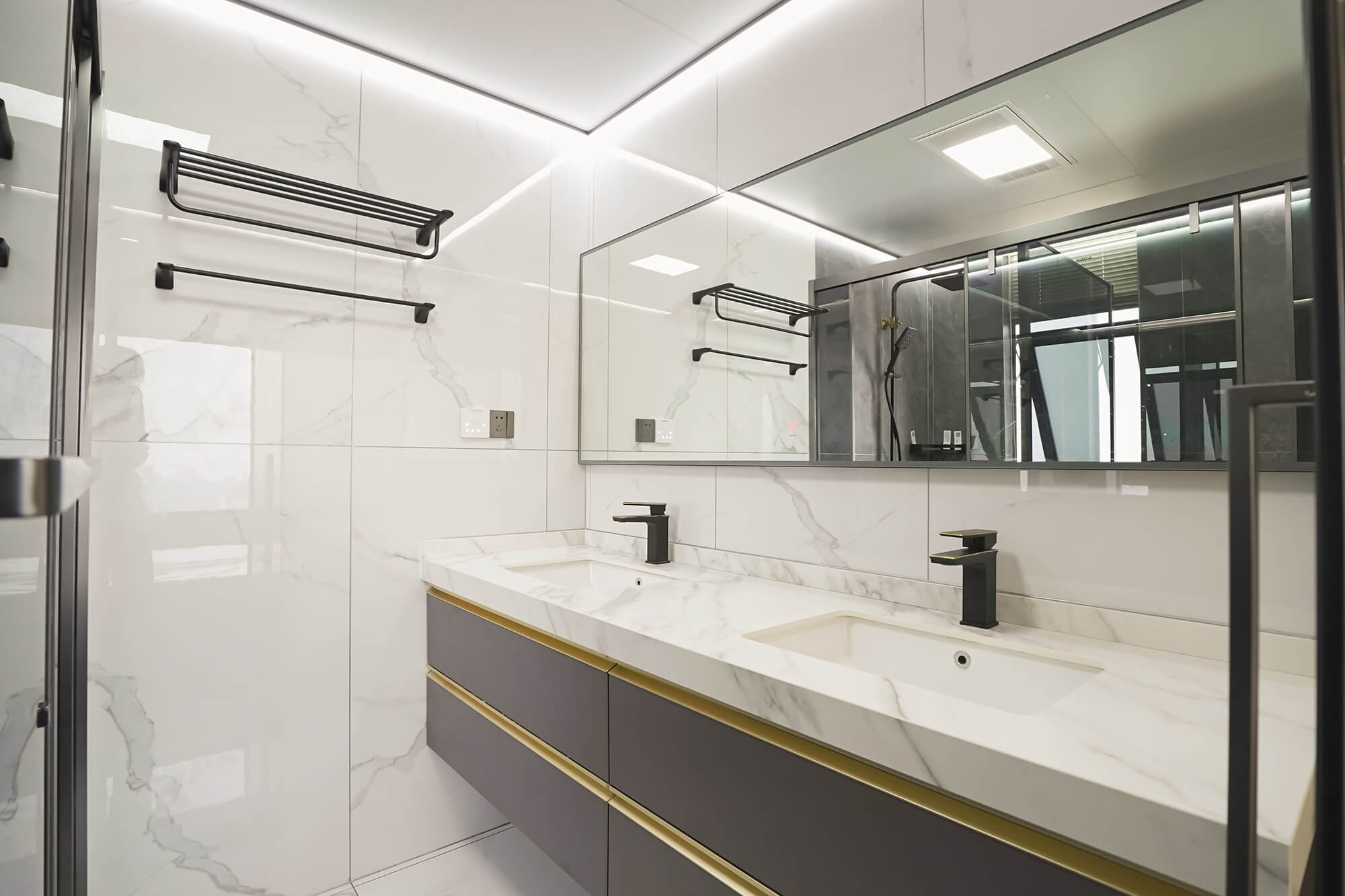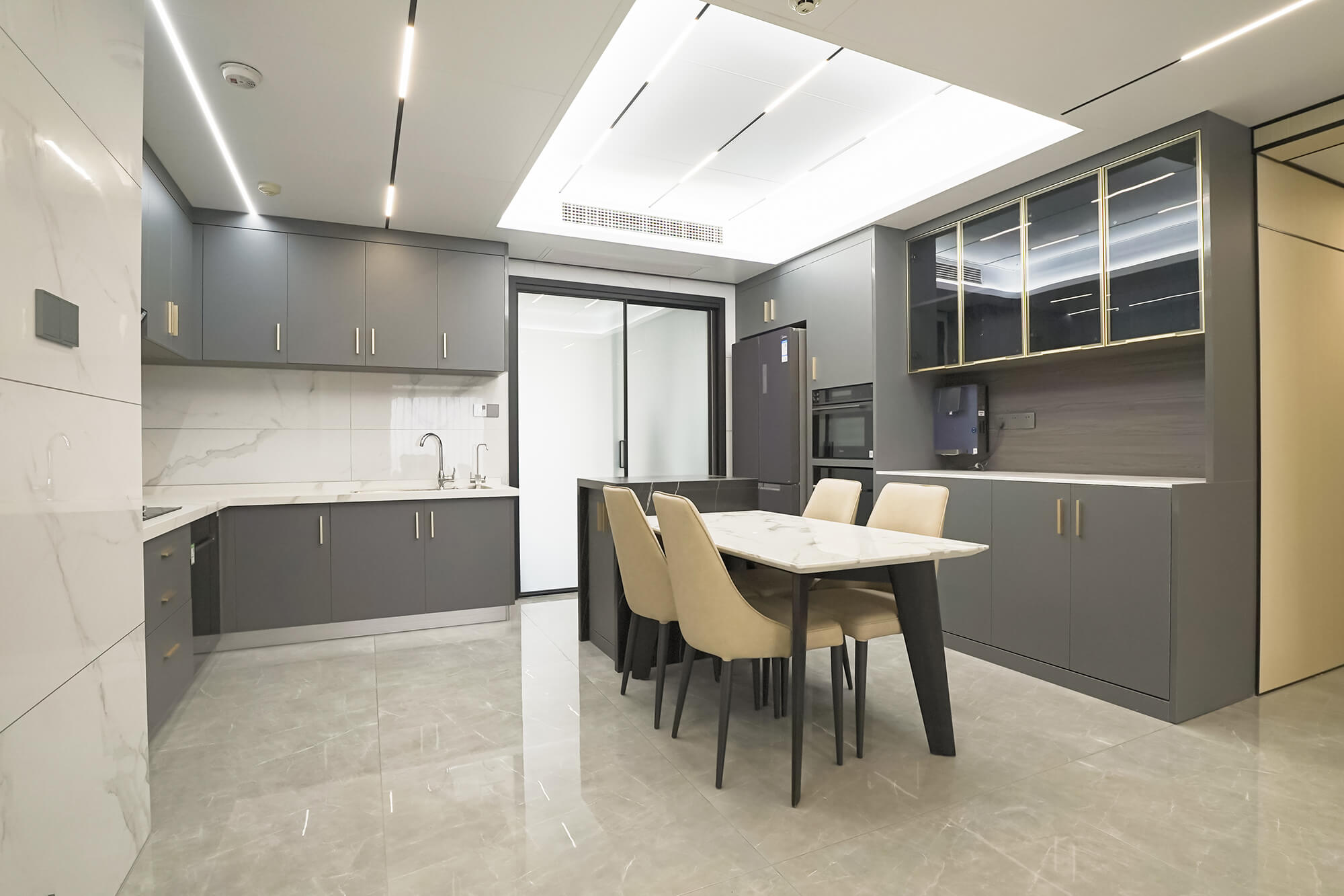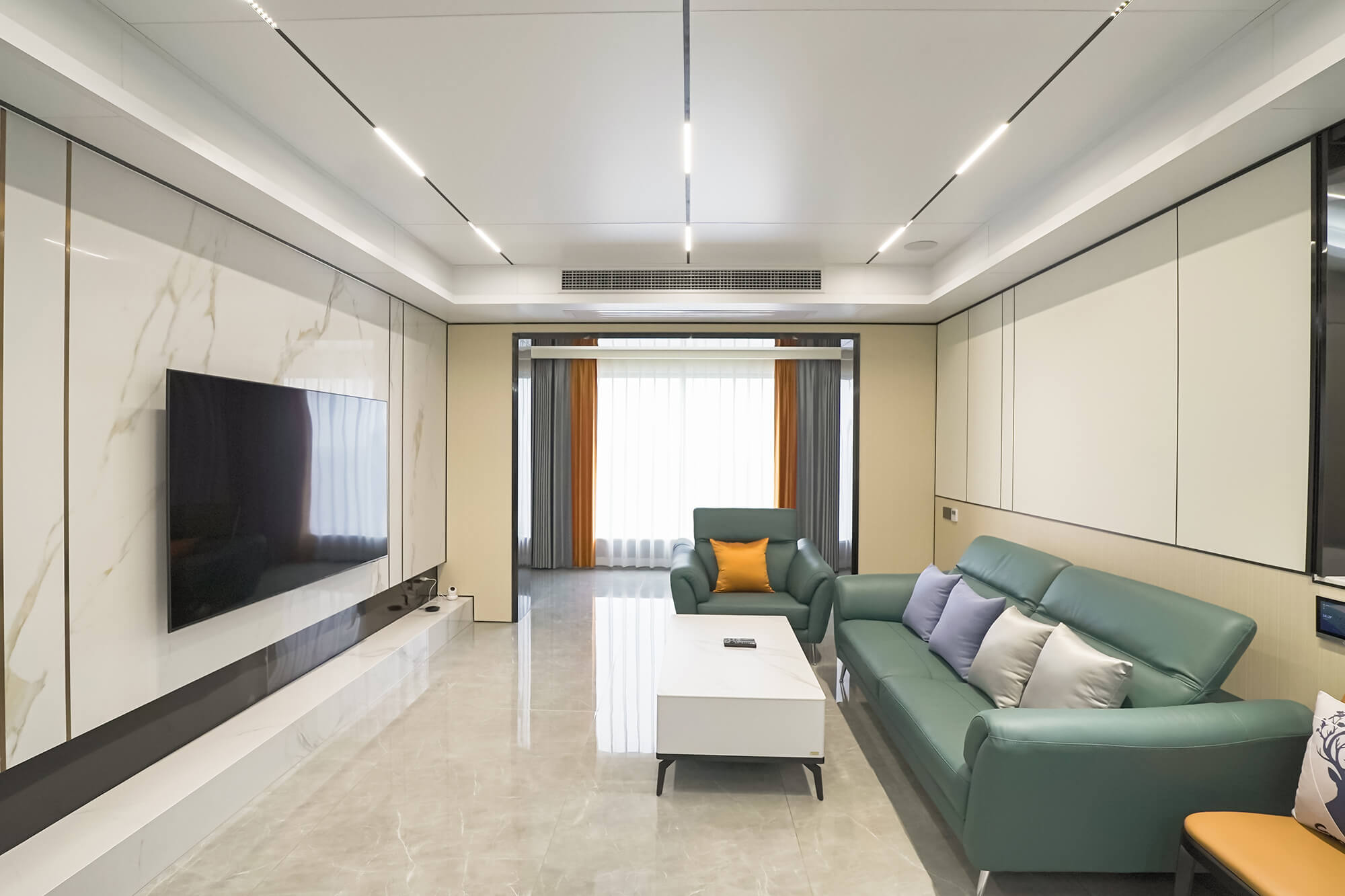 本案戶型為4房2廳2衛,總面積144㎡。業主的需求是想要這個房子盡量開闊,然后空間得到提升。設計師圍繞輕奢風,以無主燈設計為核心,通過吊頂造型和金屬線條裝飾,打造一個有現代美感的家居。