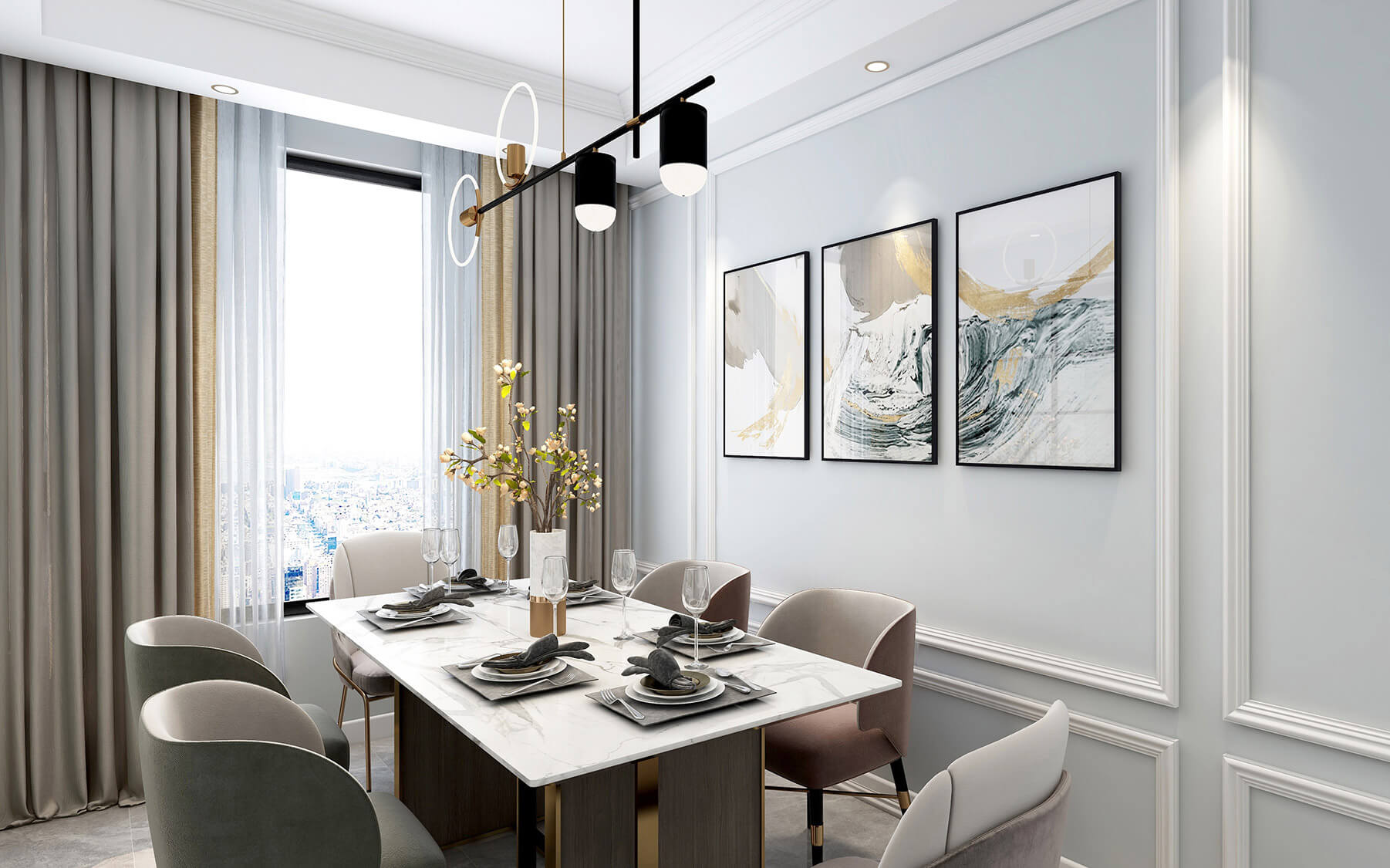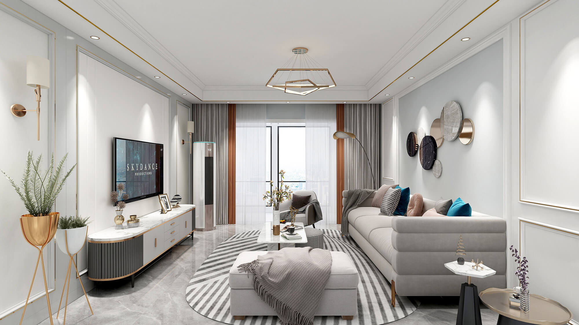 本案戶型為:3房2廳2衛,總面積111㎡。業主喜歡現代輕奢風。設計師通過最熱門的輕奢元素,高級質感的輕奢家居與擺件,搭配地磚的溫潤內斂,在視覺上可以形成一股極強的藝術張力。為居住者打造一個時尚精致的現代家居環境。