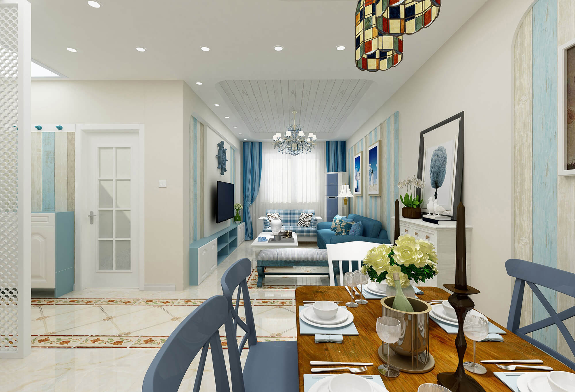 本案戶型為2房2廳1衛,總面積75㎡。現代地中海風格,打造簡約舒適的家。室內空間開敞、內外通透,打造清新、舒適的居住環境。