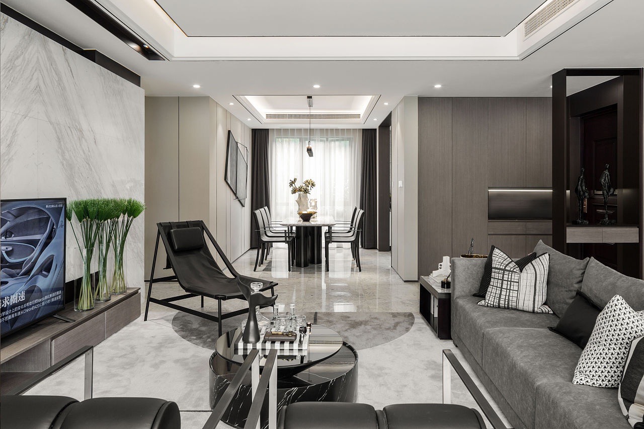 本案為現代簡約風格案例,業主喜歡簡約的黑白灰主色調,設計師以經典而理性的黑白碰撞,鋪陳于極具藝術調性的空間紋理,流暢的線條與留白化的處理,讓空間處處散發精細而不失簡致的都市風尚。