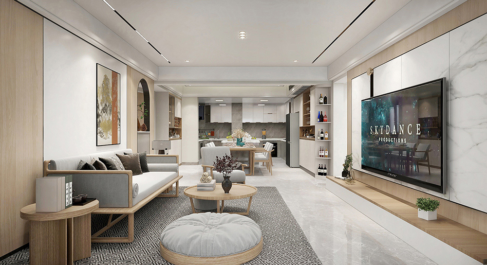 本案例128㎡的新中式風格。中式與禪意的結合帶給人一種寧靜脫俗、含蓄內斂的感覺,營造出一種令人輕松自然的端莊雅致氛圍。現代元素的點綴,讓空間不乏時尚感。