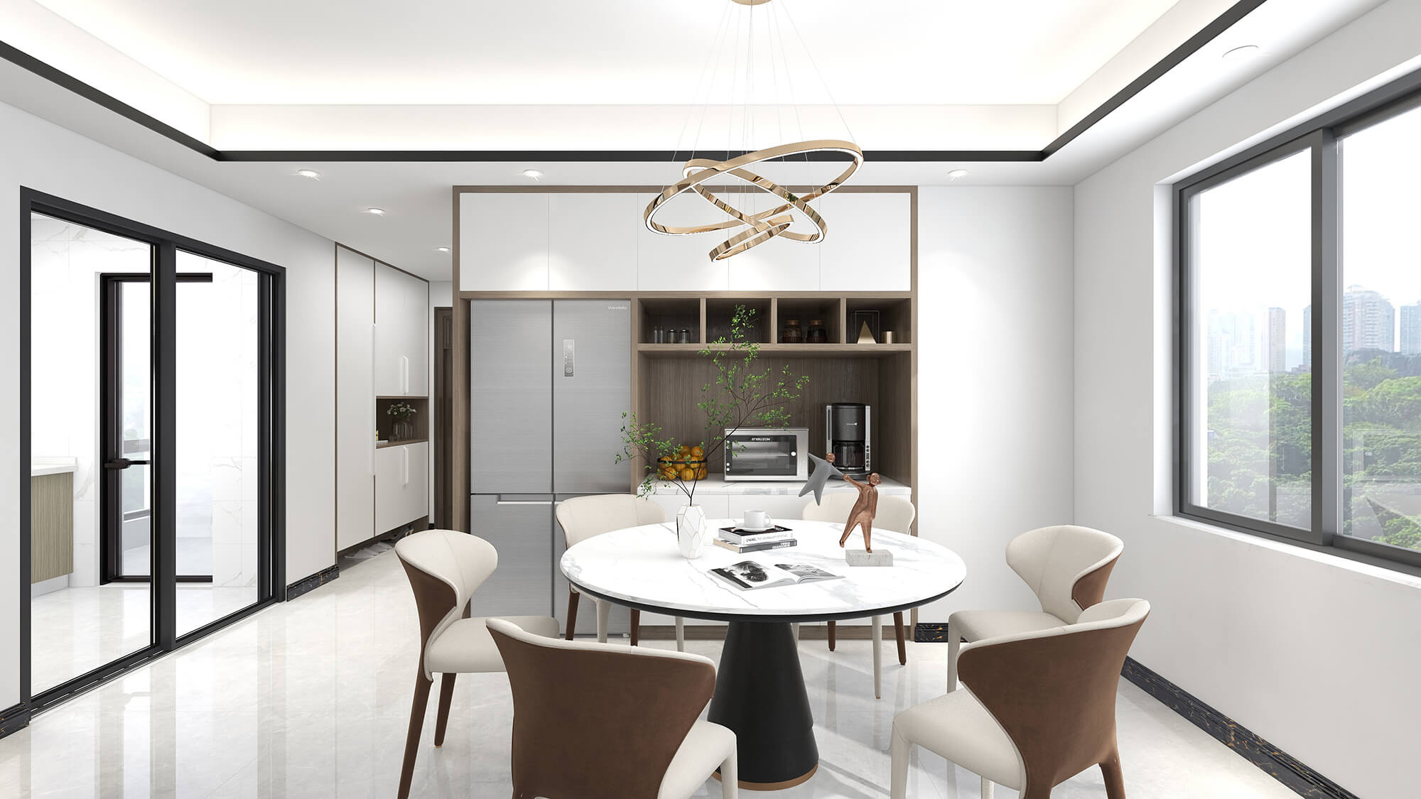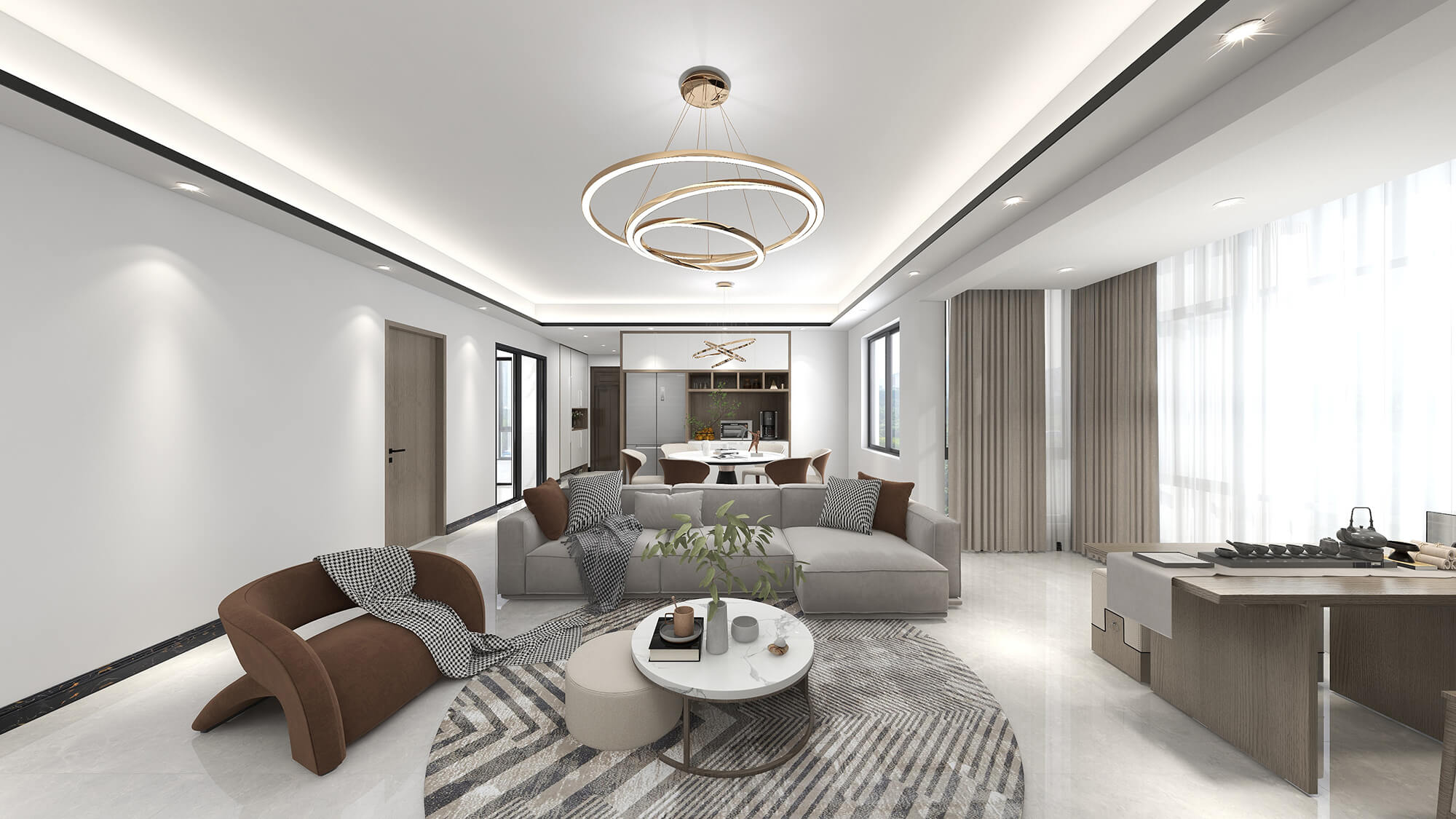此案例為131㎡的現代簡約風格,設計師充分考慮了內外環境的關系,引景入室,引光入室,寬敞明朗的平面在開闊的落地窗的加持下,延伸出美妙的生活場景體驗。