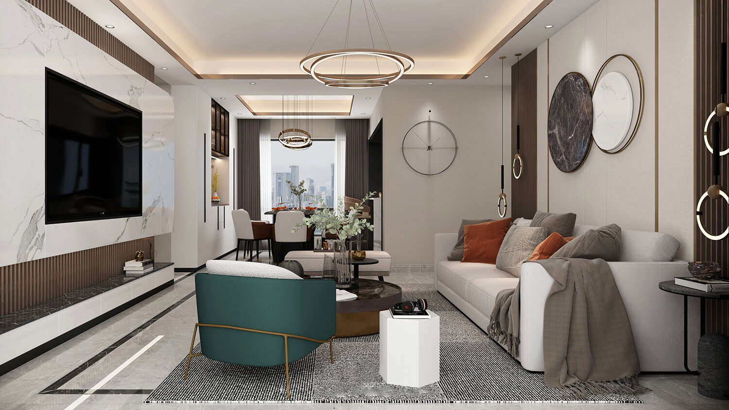 本案是125㎡的現代輕奢風格。輕奢,是一種設計風潮,更是一種生活美學,讓其有內涵,而不張揚的裝修風格。優雅之上稍加金屬修飾,自然極致。