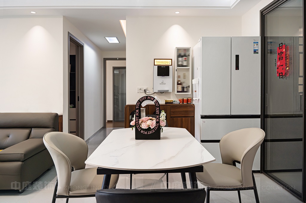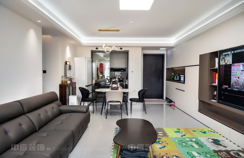 現代簡約風格空間,在設計上兼具功能性與美學感,整體以簡潔的線條、柔和的色調和實用的布局,營造出舒適且整潔的居住氛圍。這套空間通過簡約的設計,將各個功能區域有機整合,既滿足了現代家庭的生活需求,又通過細節的把控展現出雅致的生活格調。