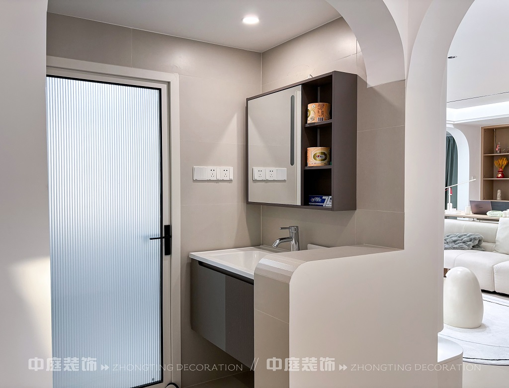 這套房子的裝修風格屬于現代奶油風格。整體以純凈的白色為主色調,營造出簡潔明亮的空間感。線條設計極為流暢,如拱形門洞、無主燈的線性燈帶,弱化了復雜裝飾,凸顯極簡美學。