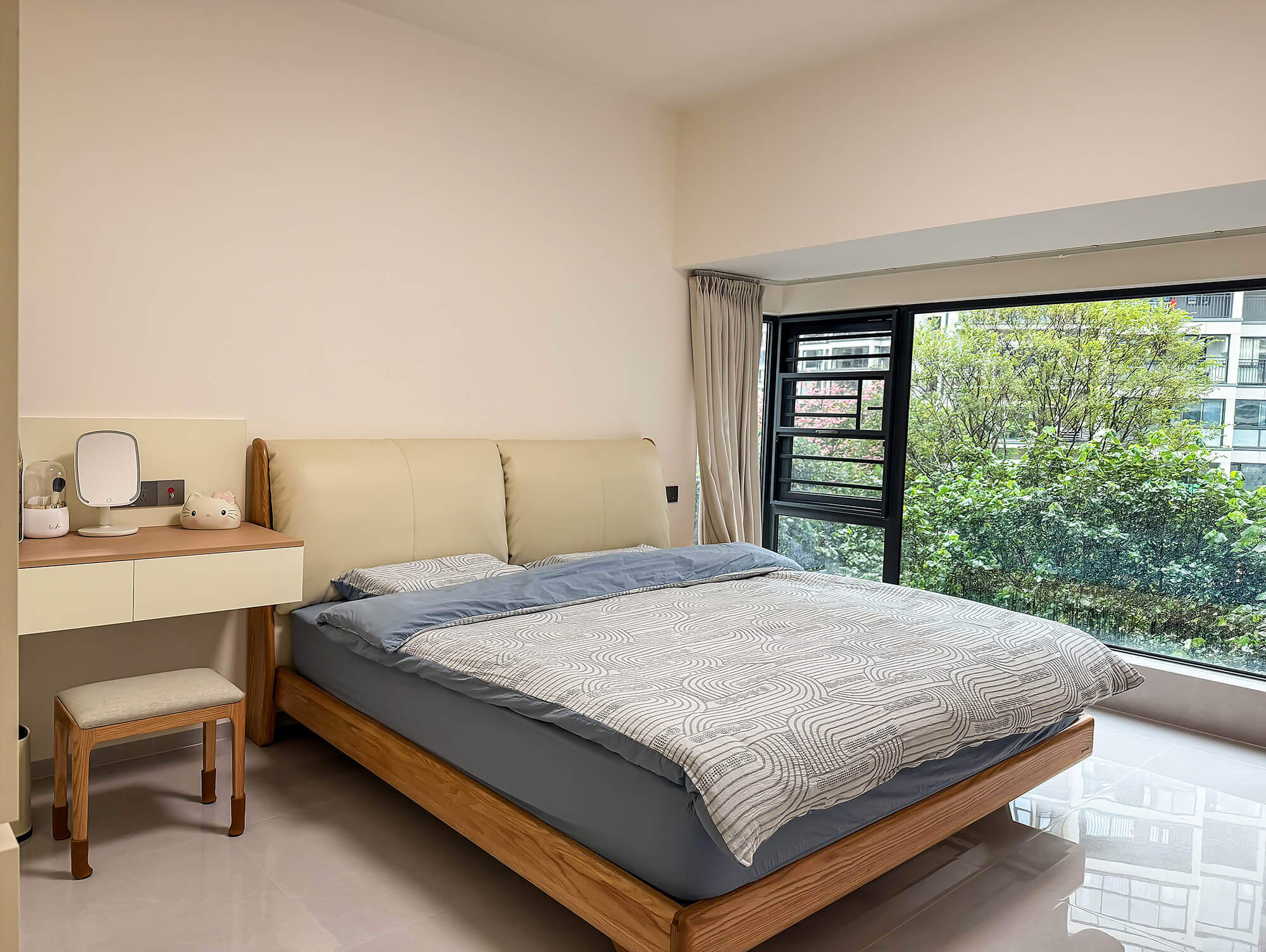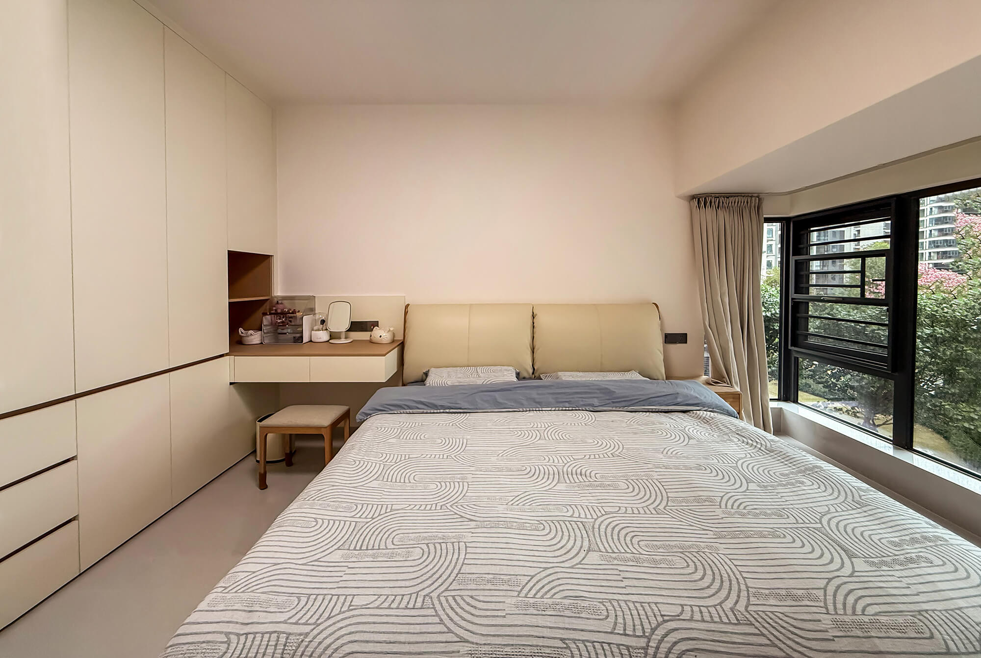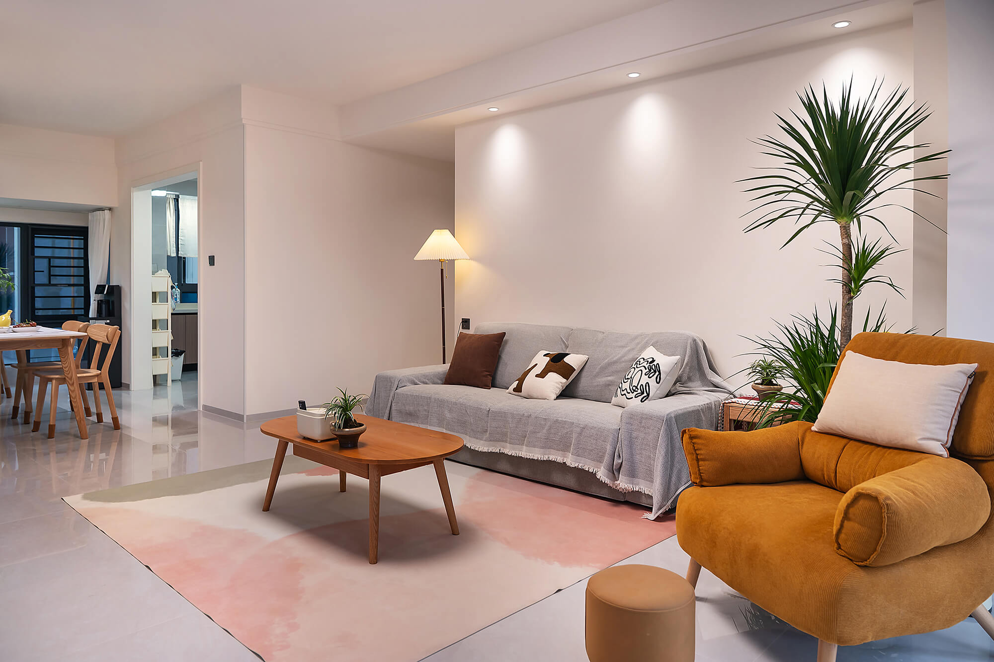 平衡 “實用與美觀”,簡化復雜造型,以簡潔線條、規整布局為核心,色彩上多采用中性色搭配少量亮色點綴。注重空間利用率,家具選型簡約大氣且兼顧功能性,裝飾元素少而精(如簡約掛畫、綠植),營造清爽、通透、適配日常居住的舒適空間。