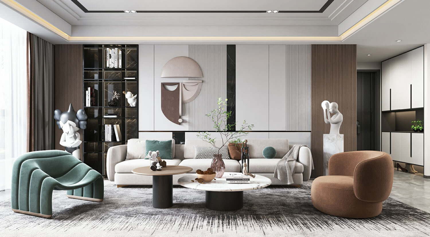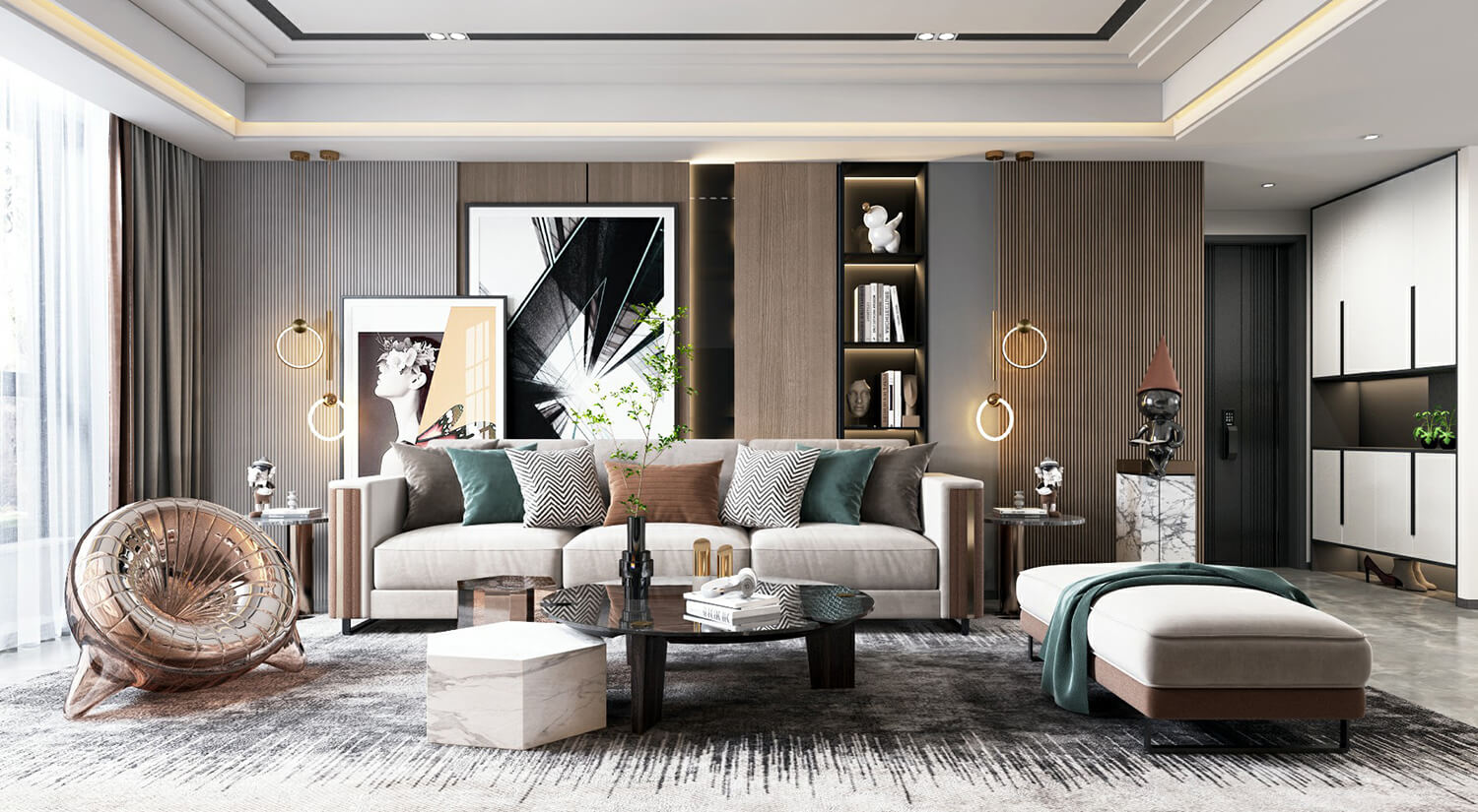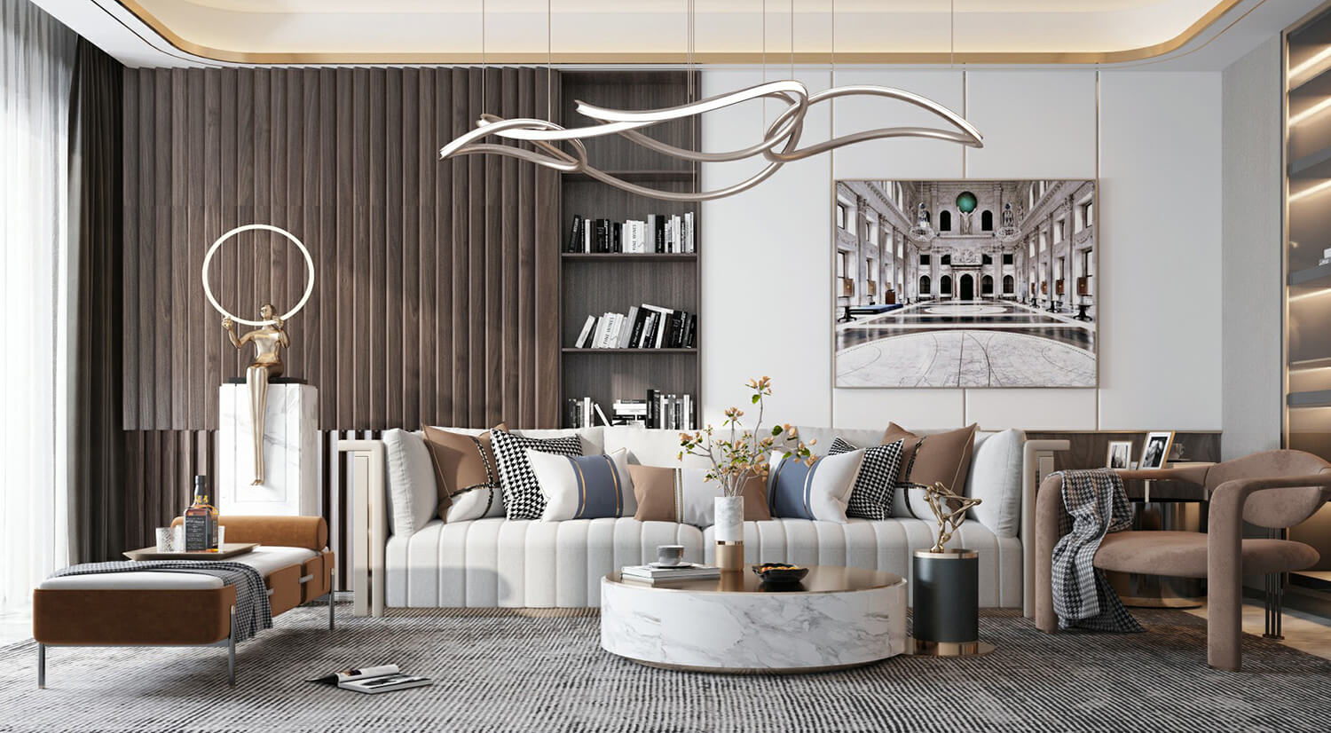 現代輕奢風格是一種融合了現代簡約和奢華元素的裝修風格,它注重材質和質感的選擇和呈現,注重細節處理,顏色搭配上也有自己的特點。在家居布置和空間設計上,也要注重功能性和細節處理。