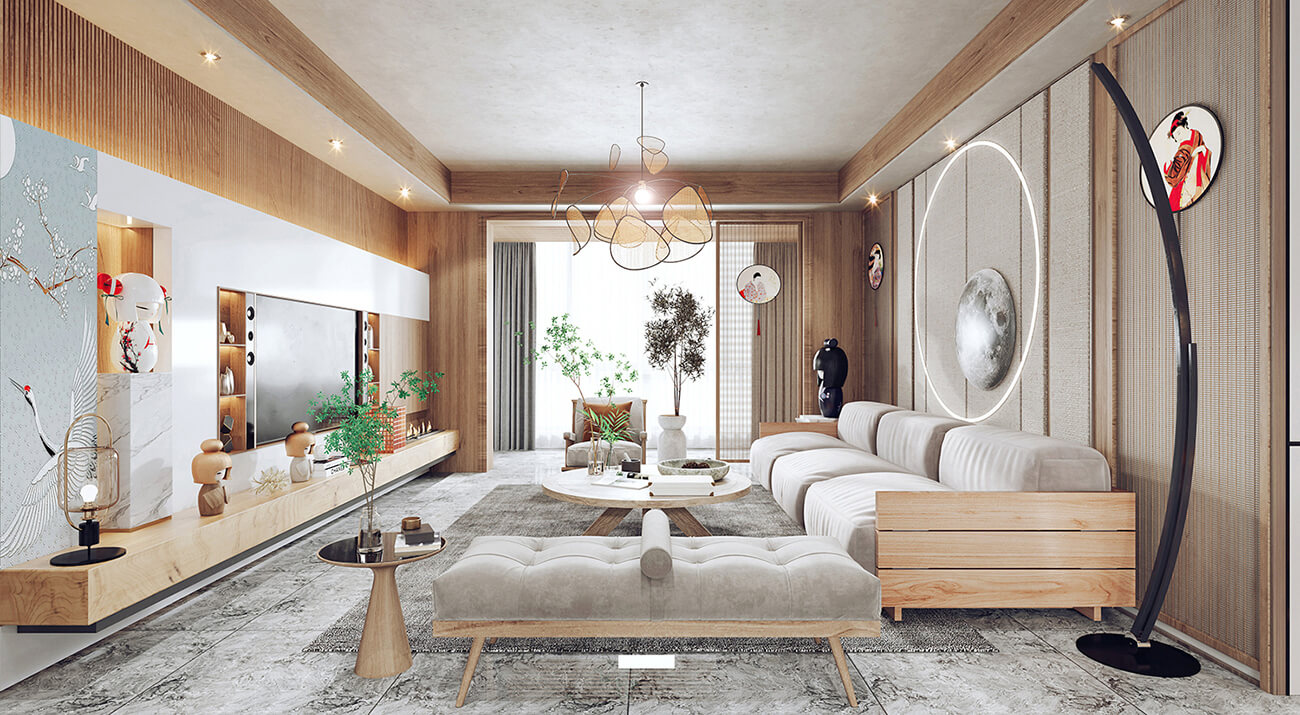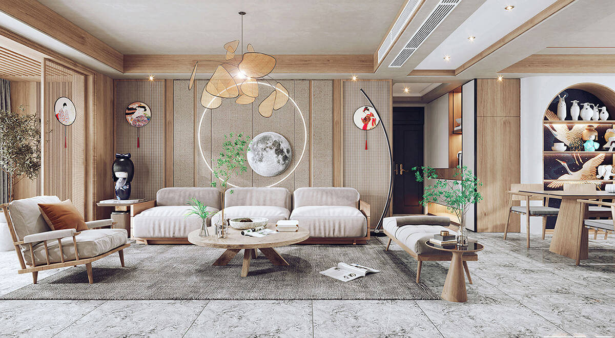 客廳通常被視為日式室內設計的重要區域。通常采用開放式布局,使客廳與餐廳、廚房和走廊相連。使空間富有靈活性。