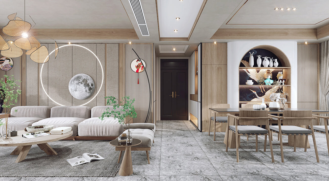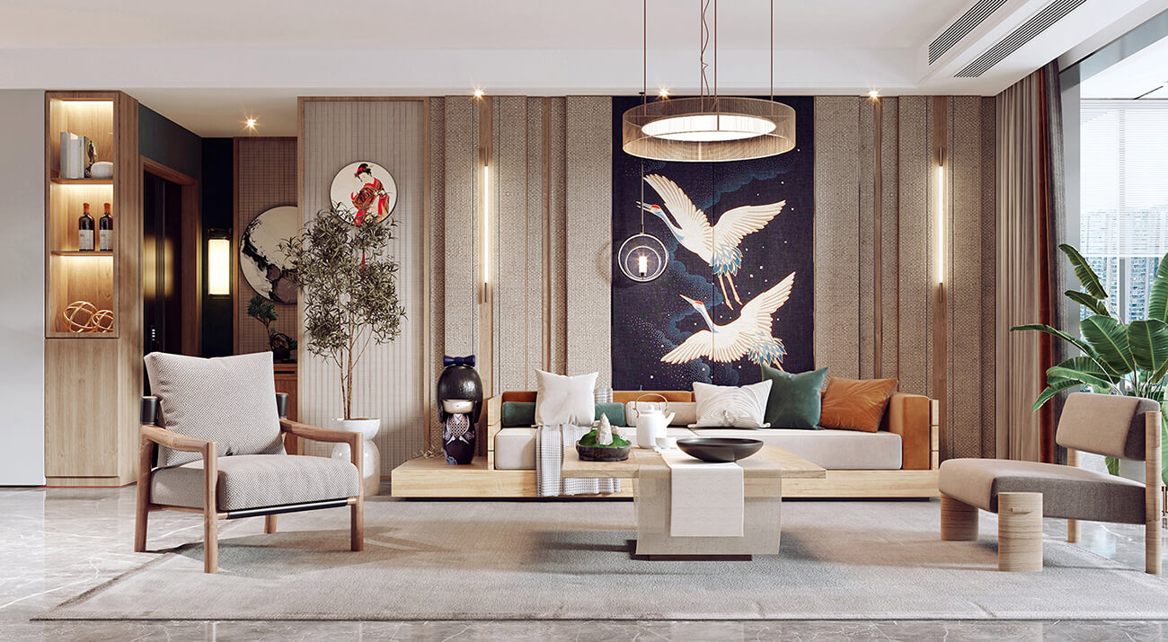 日式室內設計也注重利用空間的高度和深度。天花板常常被設計為極高的,以營造一種開放和自由的氛圍。