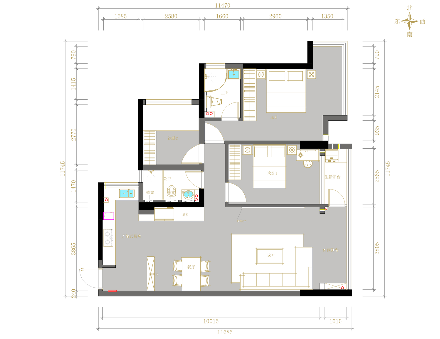 輕奢風格丨 三居室 丨80-120㎡