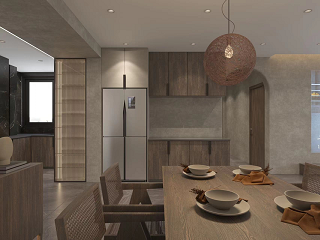 樸實、純粹的材質與簡約、自然,不帶一絲造作的中性配色,賦予寧靜的寂氛圍,在這座繁鬧得城市覓得一處安逸。是一種比極簡風更加冷淡的風格,不會有跳脫的亮色出現,沒有強沖擊力的色彩,常用大地色作為基礎用色,米色系、高級灰也是常用的色調。枯寂、素凈的色調正是侘寂風所傳達的精髓。